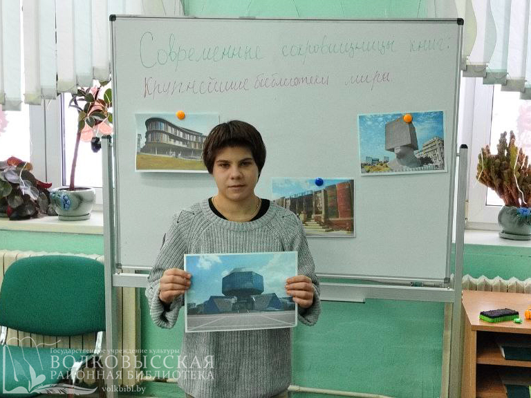 В мире есть огромные книгохранилища, сочетающие богатую историю, великолепную архитектуру и прекрасный интерьер. 10 января для воспитанников ГУО «Волковысский районный социально-педагогический центр» библиотекари филиала «Районная детская библиотека» провели урок библиотечно-библиографических знаний «Современные сокровищницы книг: крупнейшие библиотеки мира».