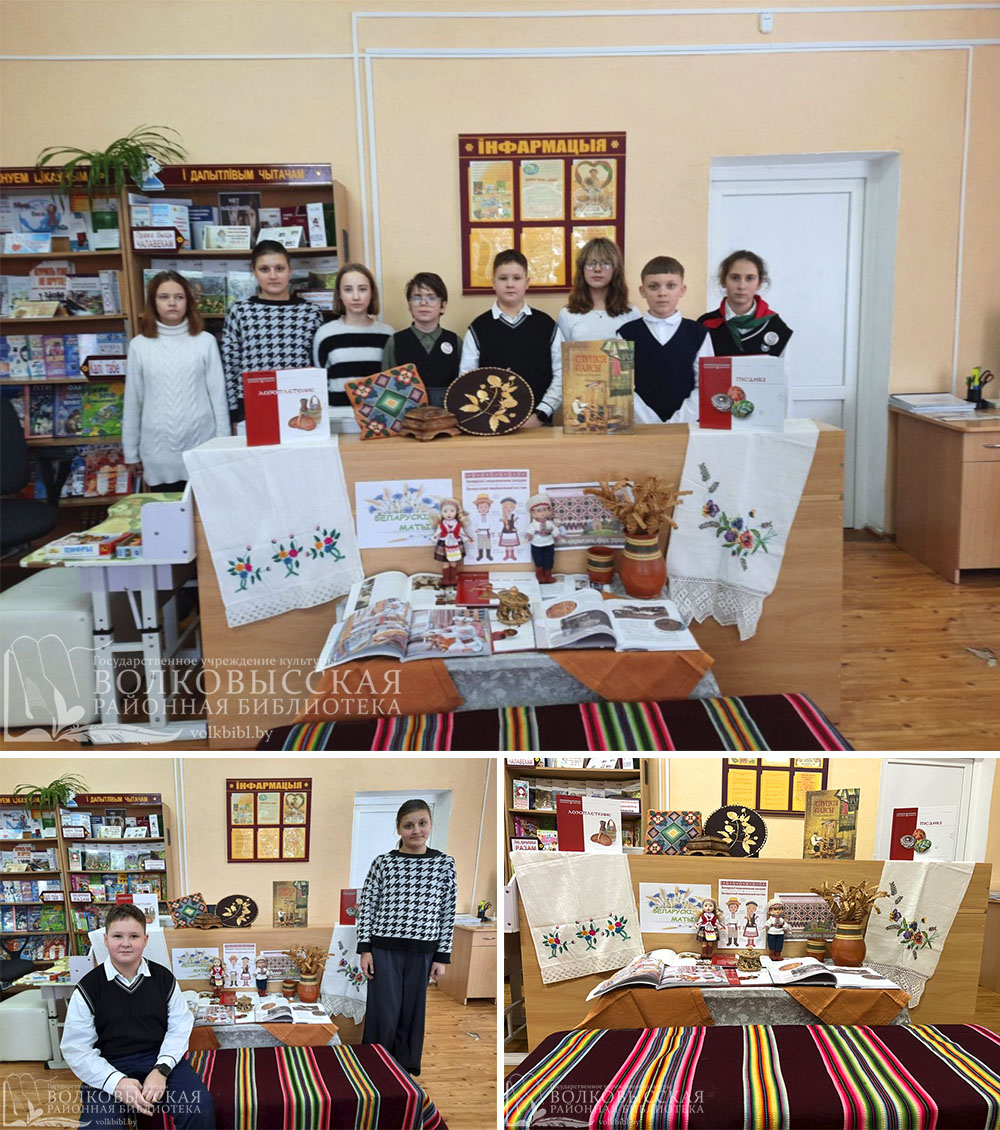 28 января в филиале «Городская детская библиотека» для учащихся 5 «А» класса СШ №4 г.Волковыска состоялось мероприятие «Традиции и быт белорусов», которое прошло в форме этночаса. Ребята познакомились с белорусскими традициями, приняли участие в обсуждении национального белорусского костюма, белорусских блюд, ремёсел, а также обрядов и обычаев, вспомнили пословицы и поговорки. Учащиеся ознакомились с тематической книжной выставкой «Беларускія матывы».