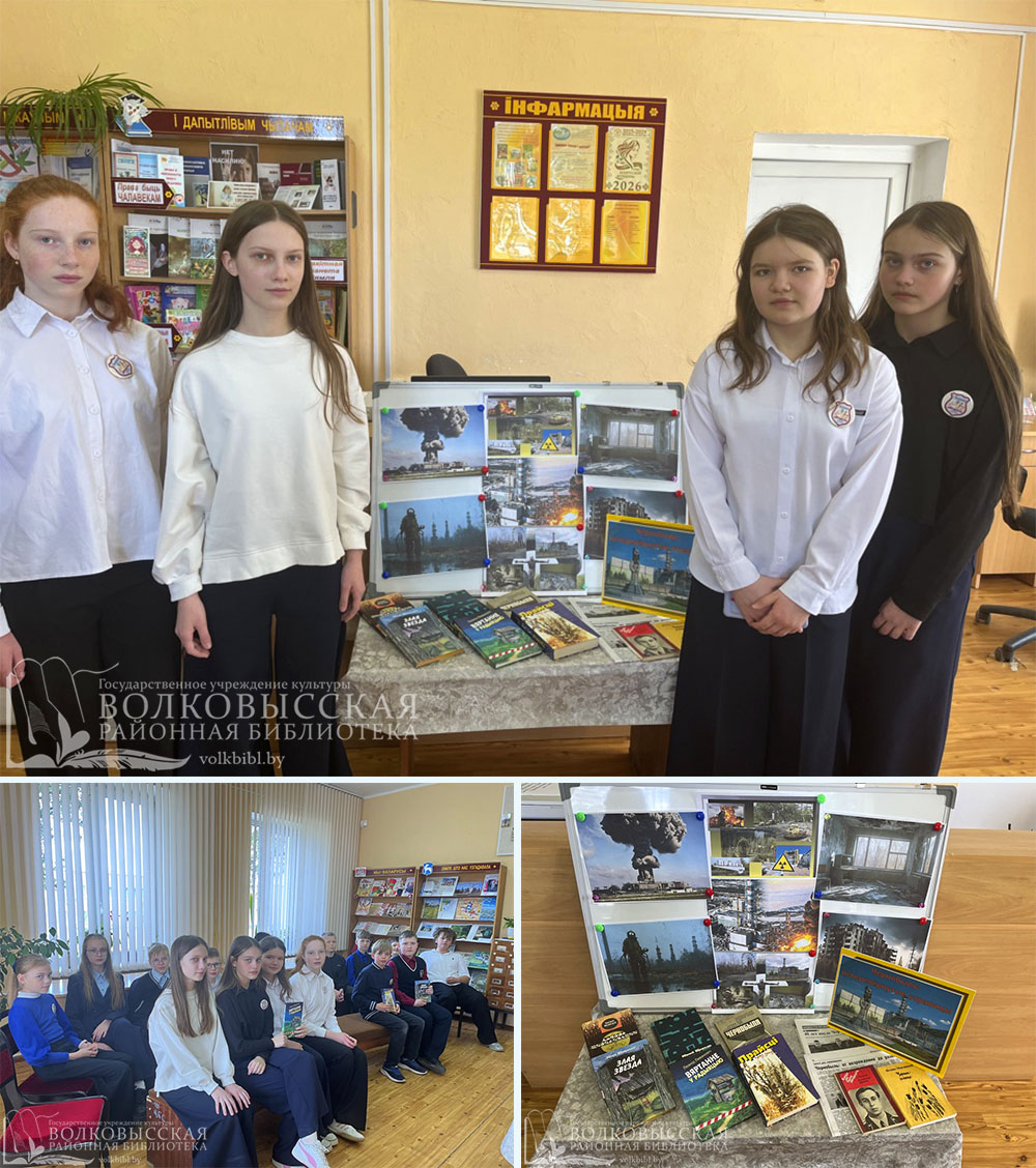 Библиотекарь обратилась к участникам с призывом не забывать о таких печальных страницах в истории, а также порекомендовала художественную литературу тематической выставки «Чернобыль: неперевёрнутые страницы», где раскрывается тема чернобыльской трагедии.