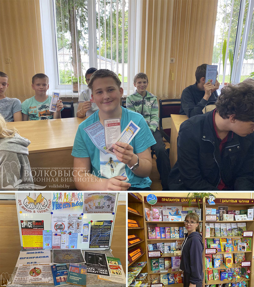 В ходе беседы библиотекарь рассказала, что такое наркотики и наркомания, и к чему приводит их употребление. Подростки узнали, что за незаконные действия с наркотиками наступает административная или уголовная ответственность, причём уголовная ответственность наступает уже с 14 лет.
