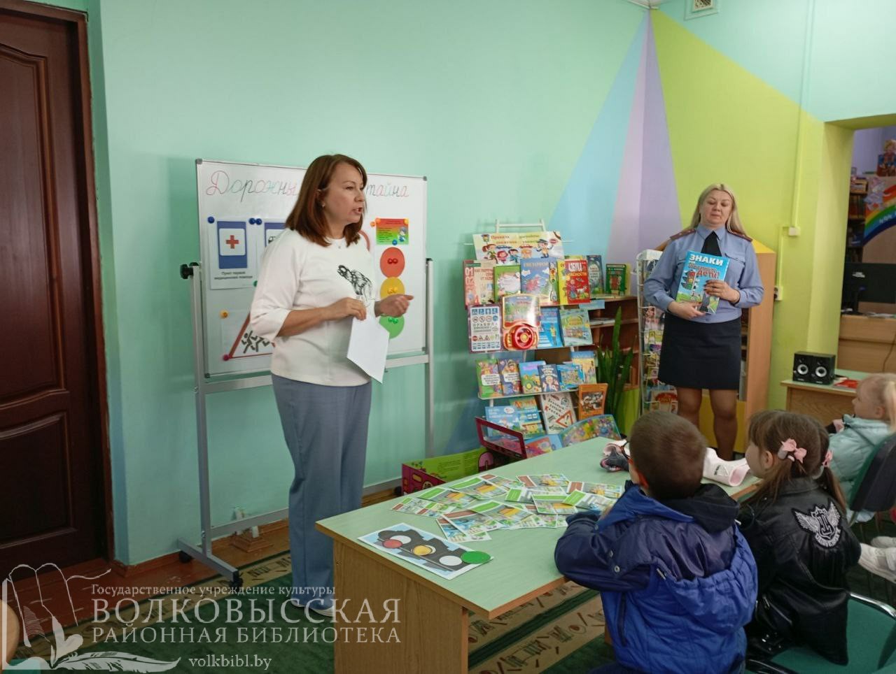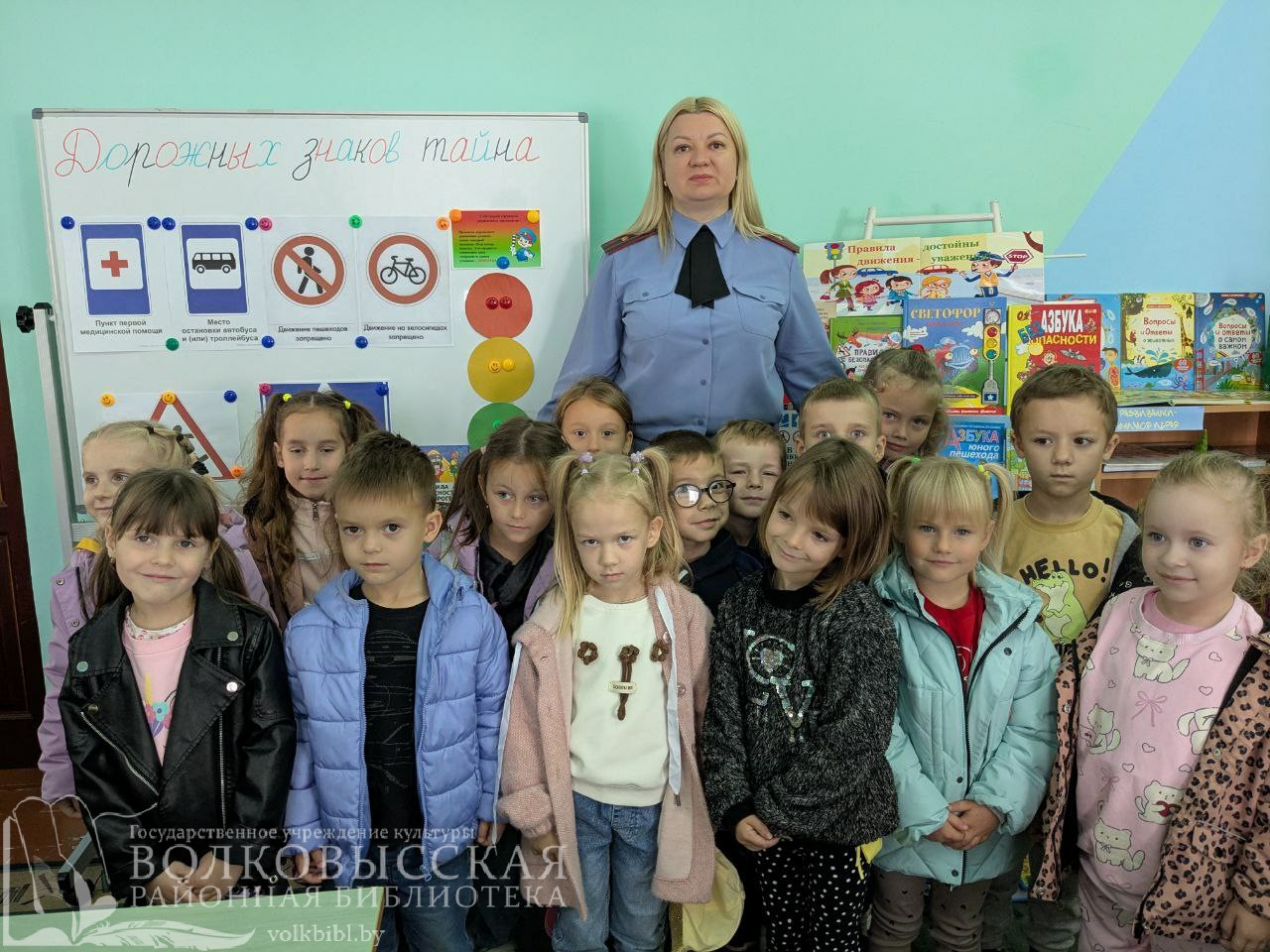 На мероприятие был приглашен старший госавтоинспектор МО ГАИ Волковысского РОВД майор милиции Елена Анатольевна Коробач. Гость библиотеки рассказала детям о правилах дорожного движения, напомнила, как переходить дорогу самостоятельно и где можно ее переходить, познакомила детей с дорожными знаками и правилами безопасного поведения на дорогах и улицах городах.
