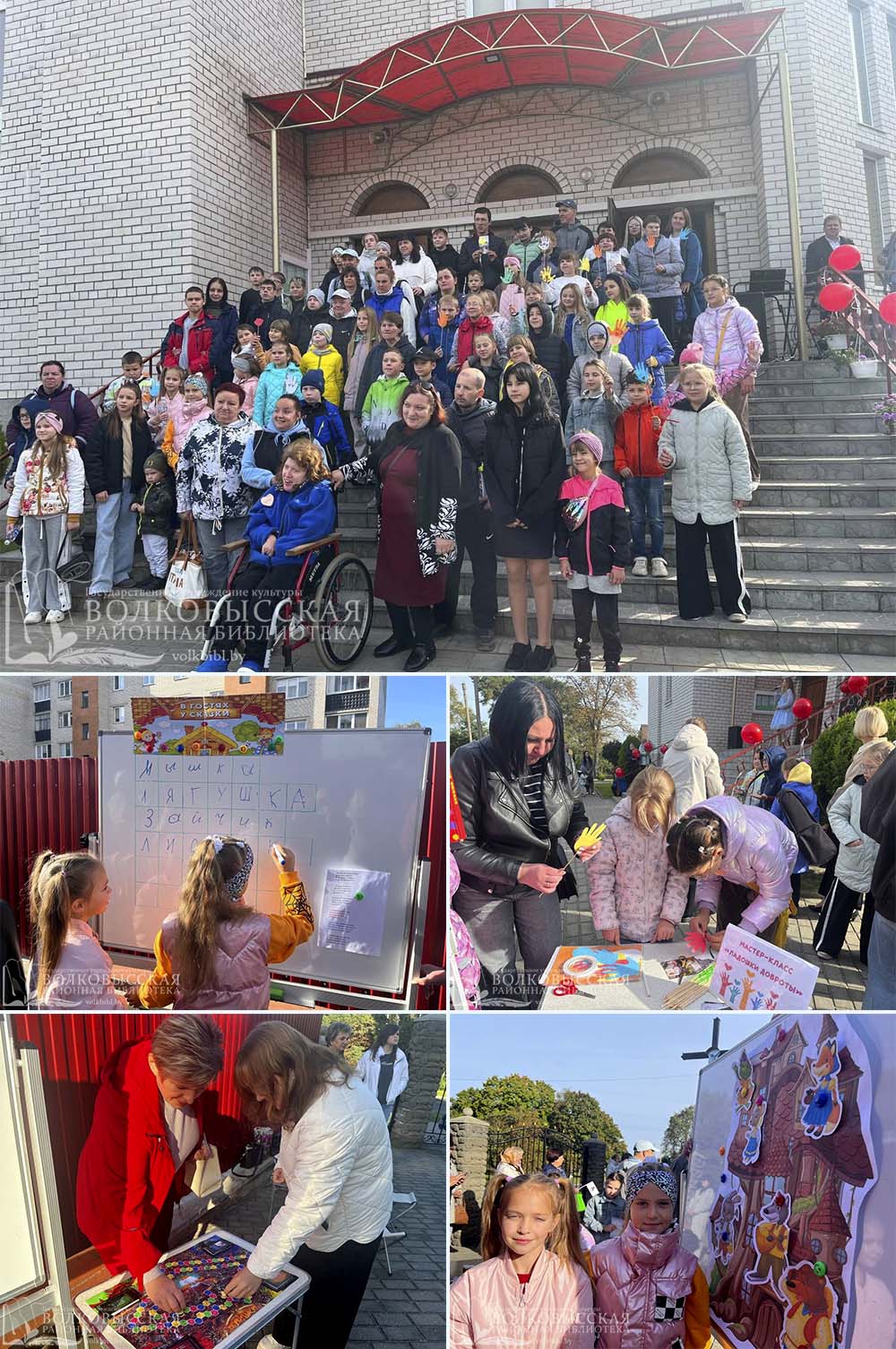 Для наших гостей: занимательный кроссворд «Сказка в гости к нам пришла», познавательная настольная игра-викторина «Прыстанак невуцтва: бітва за Ваўкавыск», мастер-класс «Ладошки добра» и конечно же красочная выставка «Книжный круиз с детской библиотекой».