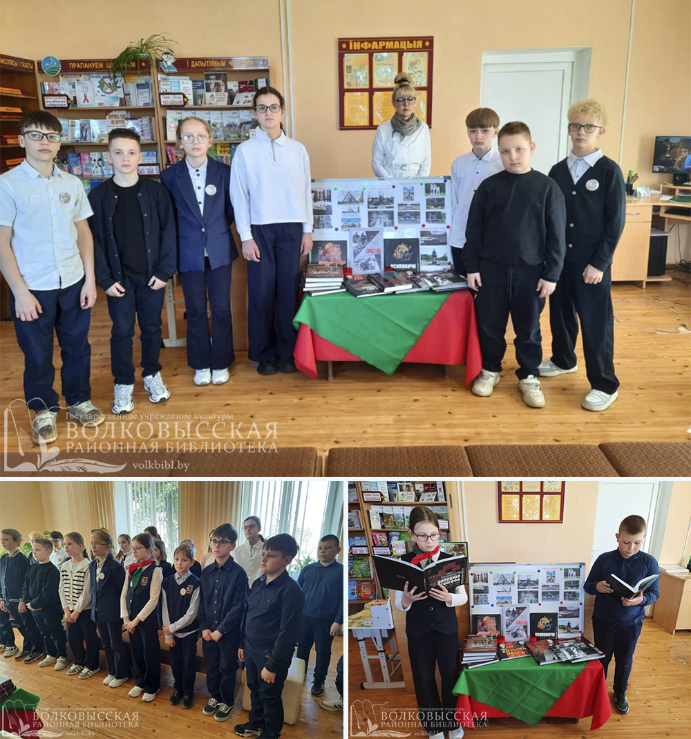 Ребята познакомились с тематической книжной выставкой «Забвению не подлежит», на которой были представлены издания, рассказывающие о подвиге советского народа в борьбе с фашизмом; обсудили серию картин Народного художника СССР, Героя Беларуси Михаила Савицкого «Цифры на сердце».