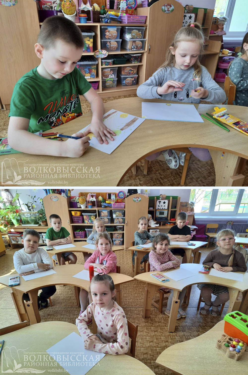 28 апреля библиотекарь филиала «Городская детская библиотека» Еремеева М.И. для воспитанников старшей группы детского сада №4 организовала час для творчества «Мы рисуем сказку».